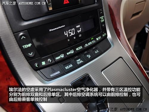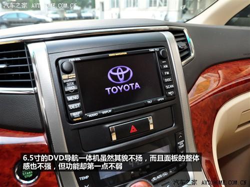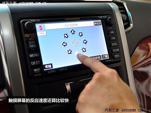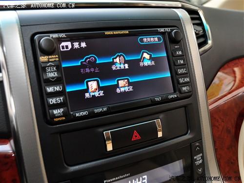 丰田ALPHARD埃尔法的影像系统目前装配的是6.5寸触摸式DVD导航系统,虽说看上起样子不怎么样,面板的整体感不强。但这个主机使用起来非常便利,触摸屏的反应也很快。至于功能,除了支持导航、DVD、MP3、CD、收音机以外还有倒车影像、蓝牙电话,并且该系统还与车载电脑相连,能查看车辆的燃油消耗记录、维修保养里程等信息。