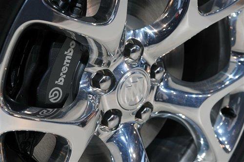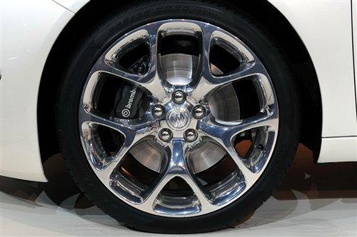 量产车很好的延续了欧宝Insignia OPC的主要设计元素,前脸头灯下两侧的进气口的设计非常具有攻击性,其边缘还加入了镀铬装饰。车辆多处都加入了“GS”的标示,另外别克君威GS标配的是19寸合金轮毂,高级Brembos刹车系统配以四轮碟刹和浅灰色的高性能制动卡钳。