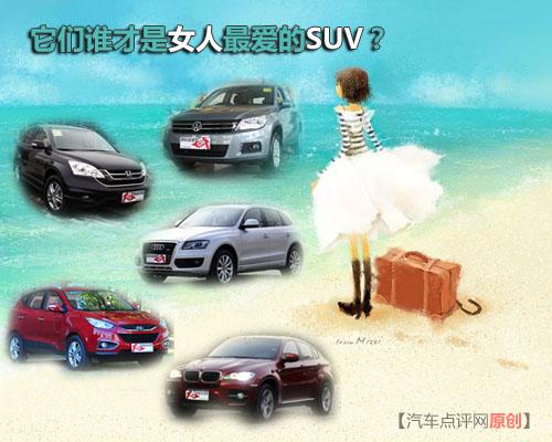 从笔者根据本站网友所推选出来的所有SUV车型中,其中出现最热的5款女人最爱SUV分别为上海大众途观、东风本田CR-V、一汽奥迪Q5、北京现代ix35以及宝马X6,虽然可能对于众位行家来说,可能这几款车距离高性能差距很大,但是对于女性而言,它们有两个共同的特点,大以及时尚。