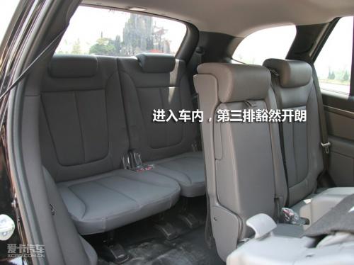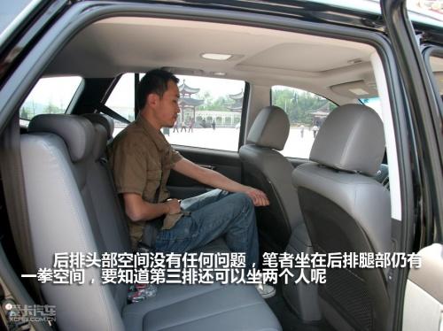 第二排的头部空间也没有什么问题,坐在第二排腿部仍有一拳的空间。虽然2010款新胜达是7座车型,但第二排座椅还是坐两个成年人舒服些,乘坐三人会略显拥挤。