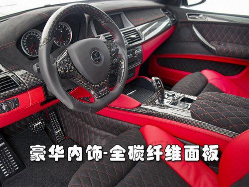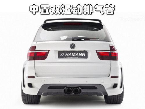 车身侧面采用了宽体化套件,新设计的后包围运动气息十足。改装版X5M安装了全新的排气系统,双排气管集中在了后包围中央。车顶更是安装了小型尾翼,对于一辆性能SUV而言还是能起到一定作用的。它配置了Hamann为其定制的22寸黑色铝合金轮毂,并且配合使用米其林高性能扁平轮胎。