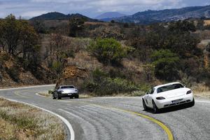 数小时后,经过弯弯曲曲的道路关口,穿过稀疏的仙人掌丛林和树林密布的洼地,卡雷拉泛美墨西哥公路赛最富变化的一条赛段被我们甩在身后。在亚热带气候的瓦哈卡,两扇迷人的鸥翼车门开始展开。从SLS AMG运动座椅中脱茧而出的轻松感觉与从300SL W194跑车的车身里出来并不一样。面对眼前这难得的比翼双飞的场景, 我不得不感慨,这是技术进步与经典传奇的比翼双飞!SLS AMG跑车不仅体现了奔驰品牌早年的创新运动精神,架设了一座连接历史的桥梁,而且同时充分考虑了现代用户的期望和渴求,它的激情如今依旧在由创新材料支撑的车壳里延续。