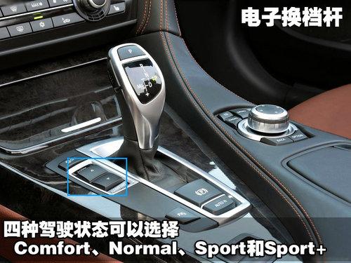 电子换档杆和按钮式驻车制动系统,敞篷开关和驾驶模式选择按钮都简约的集成在了中央控制模块,iDrive系统的操控旋钮为了与驾驶操作系统独立区分,而被巧妙设置在了真皮覆盖的操控区偏乘客一侧。新6系有在动态阻尼控制系统的配合下有四种驾驶状态可以选择,分别是Comfort、Normal、Sport和Sport+四种模式。
