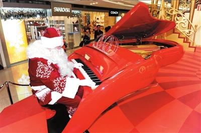 22日,“圣诞老人”在演奏诗密尔CC208平台式钢琴。