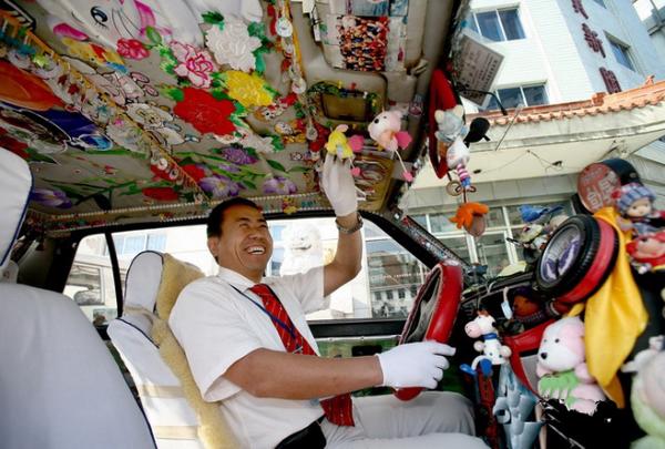 车内挂满饰品,还免费提供水果;的哥姜哲说:想让乘客有个好心情,每年都会变着花样的增减装饰 。“在外国人面前,咱代表中国,在外地人面前,咱代表长春。”搭乘这辆出租车的乘客可一边欣赏车外美景,一边吃着的哥提供的水果。今年55岁的的哥姜哲,在美丽春城中行驶了近12年,上他的车,心情会很舒畅。“和乘客有缘才能同路而行,应该相互尊重,我把乘客当成家人看待,在我车里还要体现出长春是最有人情味的城市。”姜哲说。