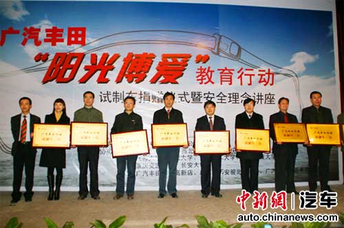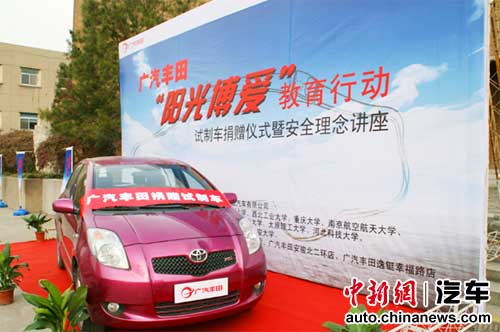 据悉,广汽丰田将试制车捐赠作为重点项目。2007年,广汽丰田正式在全国开展了“阳光博爱”教育行动,包括阳光助学金、小学捐建和试制车捐赠等活动,计划于2011年将本项目覆盖全国范围的重点汽车院校。