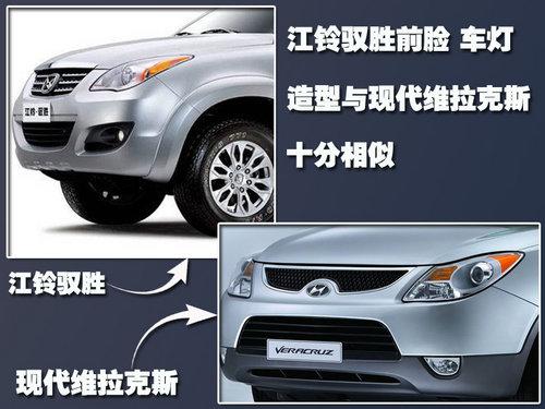 江铃驭胜的车头灯和前脸的设计风格属于比较霸气的类型,头灯配备了两侧式转向灯,造型与现代SUV维拉克斯异曲同工,让车头在显露出无尽霸气之余,还透露出一丝灵动。