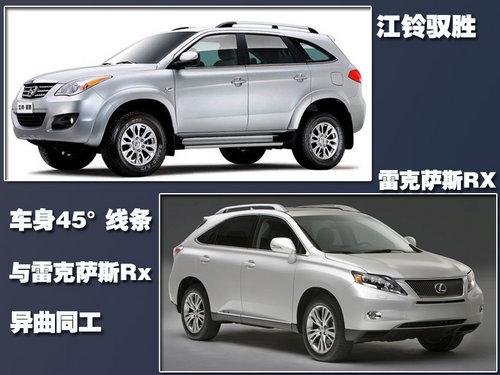 江铃驭胜的整体造型设计与雷克萨斯RX级十分相似,线条感和轮廓设计均显得十分现代。尤其是C柱小车窗那惊鸿一瞥,让我们不得不讲两款车联想在一起。