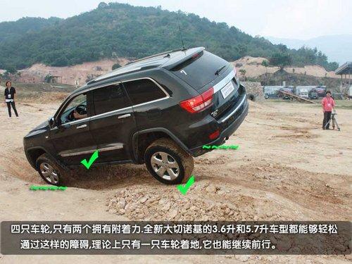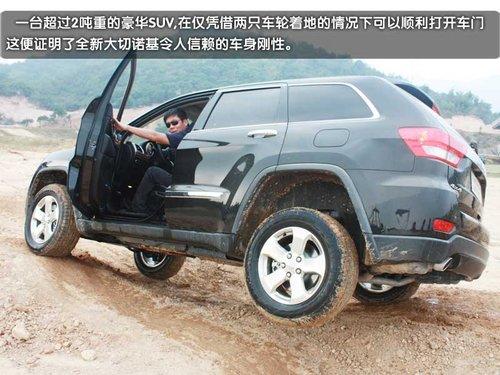 全新大切诺基的Unibody超高刚性承载车身为公路、越野全路况奠定了基础,据厂家技术人员介绍:全新大切诺基在车身进行了5,400多处焊接,车身扭转刚度比上一代产品提高了146%。所以你可以看到,在车子通过这样的大角度交叉轴项目的时候,车内乘员可以非常轻松的开启车门并且没有任何异响,这正是车身刚性的见证。