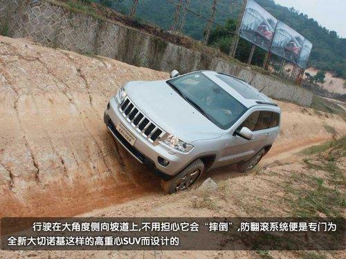 对于越野车来说较高的重心常被人们认为是容易翻覆的,但是通过JEEP的45°侧坡通驾项目,足以证明JEEP旗下车型强大的稳定性,即便是在极端情况下驾驶者或是乘员也不必有过多的担心。大角度的侧倾对于一般越野车来说是非常危险的,但是全新大切诺基的四只轮胎仿佛牢牢的扎进地里一样碾扎实的通过。