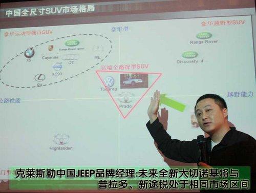 2011款大切诺基已经正式在中国亮相,但目前针对全新车型的具体配置、价格等消费者关注的问题克莱斯勒(中国)方面尚未正式公布。在经销商层面,全国各地全新大切诺基的预售工作已经启动,在中国铁杆的JEEP车主毫无疑问会将全新大切诺基收入囊中,但对于克莱斯勒中国来说全新大切诺基的意义则更为重要。
