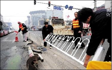 昨天(23日)下午2点15分左右,在地铁2号线崇文门站所在的十字路口处,一辆黑色奇瑞轿车撞毁护栏后“骑”上一辆本田CR-V。事故中无人员伤亡,但该路段交通受到一定影响。