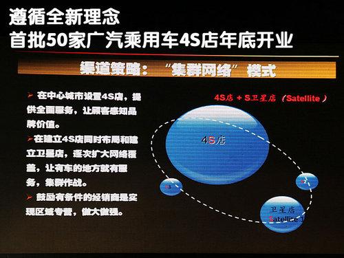 广汽乘用车总经理吴松透露,“4S店+S卫星店(Satelite)”的渠道模式,是吸收了广汽本田和广汽丰田的成功经验,同时剔除了目前4S机制的一些通病,经过两年多反复论证和修订而成。通过4S店和卫星店的同时布局,可以逐次扩大广汽乘用车的网络覆盖,并且解决4S店成本过高与1S店形象欠佳之间的矛盾。从而把更多的实惠给到消费者。