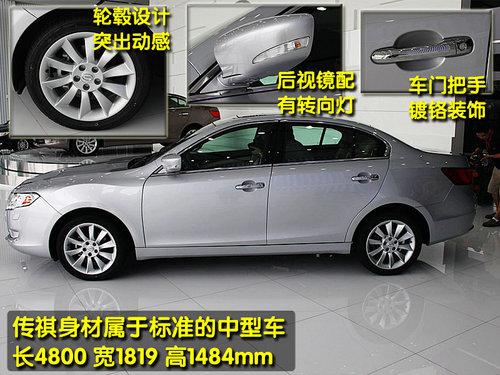 广汽首款新车传祺作为一款中级轿车,在身材尺寸上绝对是给足了分量,长宽高分别为4800mm、1819mm、1484mm,完全达到了中级轿车的标准。同时2702mm的轴距确保了车内的宽敞空间。传祺的前脸设计完全找到时尚,成熟、大气这几个词。