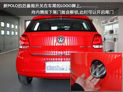 新款POLO的尾部设计和上一代POLO多少还是有些相似,但是上一代车型所出现的所有圆滑线条都被换做了直线。消声器的末端隐藏在车身底部,尾门上的LOGO即是打开尾门的开关,这与一汽大众第六代GOLF是一样的设计。