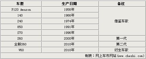 与其他明星车型一样,全新S60也拥有自己的辉煌历史,其中最早一款历史车型可追朔到50多年前的沃尔沃P120 Amazon车系(1956年),再从140车系(1966年)、240车系(1974年)、850车系(1991年)、S70(1996年)、第一代S60(2000年)到即将于明年初登陆中国市场的全新S60,一步步蜕变为如今引领风潮的动感车型。