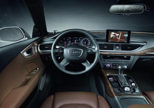 从官方公布的图片来看A7有深棕色与浅色两种内饰配色可选,多功能方向盘也有四辐与三辐两种样式。在内饰设计上它与新A8有许多相似之处,由金属和皮革打造的内饰吸取了跑车的设计风格。