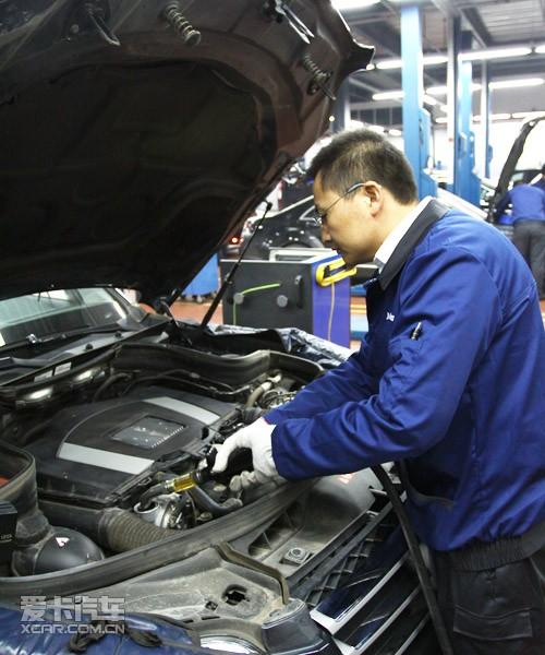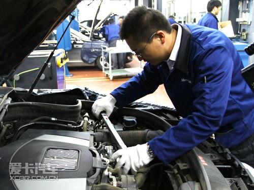 奔驰GLK的保养与奔驰其他轿车一样,分为A,B两种保养方式,我们的这部车,需要做的是A保,其保养项目包括机油机滤的更换,以及全车检查。