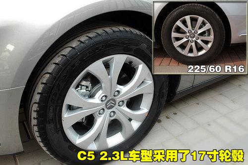 在配置方面,2011款C5尊驭型采用了17寸铝合金轮毂和侧安全气帘,不仅外观看起来大气而且安全性能也更出色。