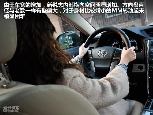 虽然新锐志相比老款只在车宽上增加了20mm,但体现在车内横向空间上还是非常明显,一进入车内立刻觉得新车“长大了”。真皮方向盘的尺寸一如既往的偏大,不过造型非常出色,豪华中透着运动,只是身材娇小的MM在转动时稍显困难。新锐志2.5风尚青英版还配备了换挡拨片,增添了驾驶乐趣。