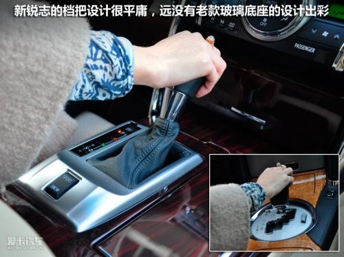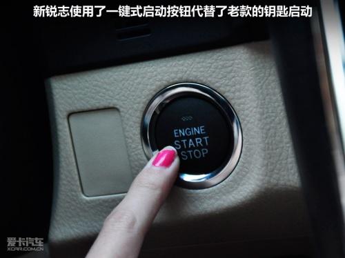 新锐志使用一键式启动按钮代替了老款的车型的钥匙启动,也使新锐志更加具有科技感。不过老锐志非常有特色的玻璃底座小档把的设计没有得到延续,新的档把和基座相貌平平。新锐志的变速箱提供了运动和雪地两种额外的驾驶模式。