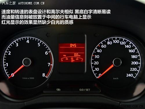 这款三幅方向盘的样式已经再熟悉不过了,大众旗下的多款紧凑型车均已经采用这款方向盘,而即使是新POLO的高配车型也没有安装方向盘音响控制键,这点让人略感失望。仪表盘的样式并无太大不同,反而是红色光的行车电脑比较引人注目,不过它的效果明显没有高尔夫上白光那样的质感。