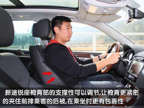 在内饰方面新途锐一改沉稳的设计风格,三辐式多功能方向盘替代了源自辉腾的四辐式设计。类似高尔夫的多功能按钮集成了影音系统、行车电脑、定速巡航、车载电话等操控设置,集中体现了新途锐的驾驶乐趣。