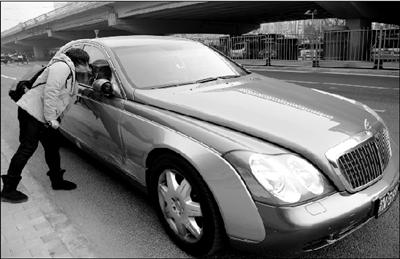 迈巴赫右侧车门微微内陷并留下划痕。 本报记者 王苡萱 摄