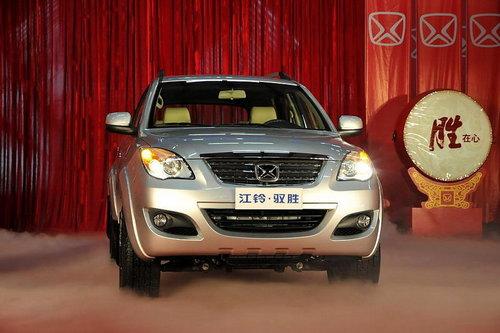 悬挂江玲全新车标的驭胜定位在都市型SUV。新车尺寸为4740*1894*1862mm,轴距2750mm。其采用了非承载式车身,车架采用了梯形结构,前悬挂为独立双叉臂,后悬架螺旋簧四连杆结构。