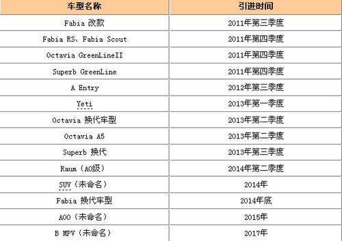 作为上海大众双品牌战略下的产物,斯柯达品牌进入中国市场几年来知名度并没有显著提升,其车型种类的匮乏也导致了“明锐”一度成为了斯柯达的代名词。近期,某网站曝光了斯柯达未来新车计划,包括现有产品换代、A0、A00、MPV等车型均出现在新车规划中,从中可以看出斯柯达庞大的市场计划。而最受关注的Yeti车型有可能先采用进口的方式销售,而正式国产的时间是2013年第一季度。