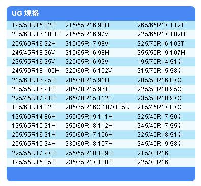 固特异UG 采用超强雪地抓地力,专利三维“霸力泡”技术,在保持胎面刚性的前提下,增加60%的花纹刀槽,既大幅度提升抓地力,又保证了操控性。 优化的刀槽方向,保证每一条刀槽在抓地瞬间都处于最大受力方向,使得在冰雪路面上直行或转弯都有极佳的抓地力。V型胎面花纹设计,高效排水、减少打滑,降低噪音。特殊冬季配方,在提高低温时的柔韧性和耐磨性的同时对湿地操控性和刹车性能也有提升。