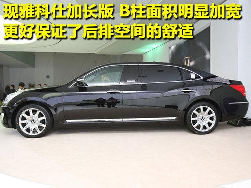雅科仕(EQUUS)是目前现代汽车最高级别的车型,该车型与同级别豪华车型相同,均为后轮驱动,同时过动力系统的空间布置优化,创造了最大化车内空间,提供了同级别车型中最宽广和最符合人体工程学的空间配备。短悬垂和长轴距保障了理想的车内空间。而明年推出的加长版车型将更加符合中国人“加长”的需求,以满足不同消费者的需求。