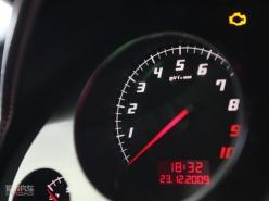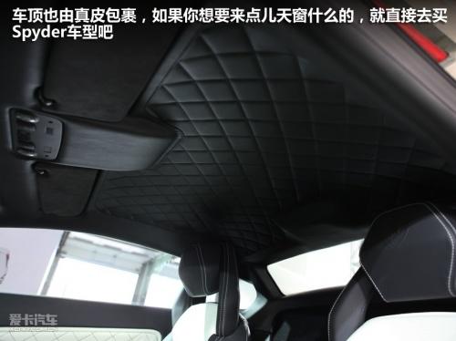 中控台上方的油压、油温和电压表提醒着我这是一台专业的赛车,在赛道上高速奔驰是这些数据时至关重要的。这个时候车内相对昏暗的光线让我觉得有点儿压抑,下意识的抬头去找天窗什么的。无意间发现车顶也是由真皮包裹的,如果你想来点儿天窗什么的让车内更加开扬,直接去买敞篷的Spyder车型吧。