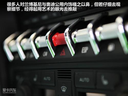 盖拉多粗壮的打孔真皮方向盘握感非常饱满,椭圆形的造型是典型的赛道风格。如果不是一会儿还有更给力的家伙,我已经对这个方向盘爱不释手了。目光转向一旁的中控台,这是兰博基尼为人争议和诟病最多的设计,与奥迪通用的中控台设计。很多车迷怎么也想不通兰博基尼为什么不去自己开发一套更给力的内饰,你会反感奥迪风格的中控台吗?