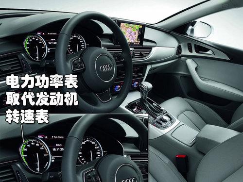 混合动力版A6与2012款普通A6在外形上没有什么区别,不过前脸进气中网设计更为霸气,车门踏板上有专属的“Hybrid”徽饰。车内仪表盘原先的转速表已被电动机输出功率表取代,中控面板增加了一个“EV”纯电动模式开关按钮。特别设计了自动恒温空调系统,并且可以调节功率以维持电池的工作效率。