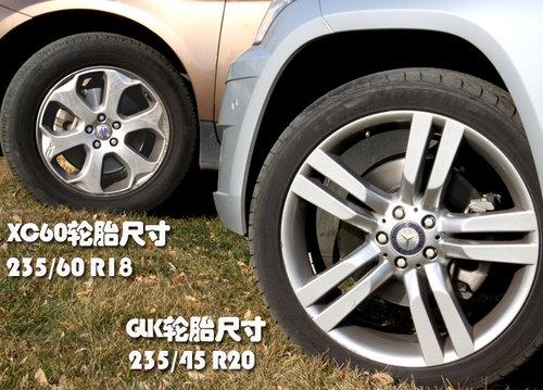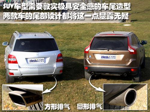 如果论车身线条上的设计,奔驰GLK的侧身线条绝对可以用丰富来形容,刚劲有力的线条勾勒出很硬朗的美。而沃尔沃XC60以简约的线条设计,营造出动感运动的令一种风格。由于两款车的排量都比较大,双排气尾喉也是比不可少的装备之一。20寸的大尺寸轮毂足以证明奔驰GLK在城市中将会充满霸气,而拥有18寸轮毂的XC60则为越野能力带来了一定保障。
