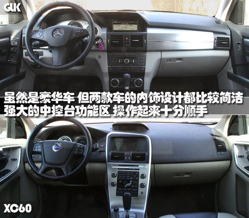 内饰方面,两款车都说不上设计的很时尚,分别观察两款车的中控台设计,GLK还是更倾向商务型,而XC60则更显动感十足。虽然是豪华车,但是两款车的强大功能并未给我们带来不便,操作起来都比较顺手。