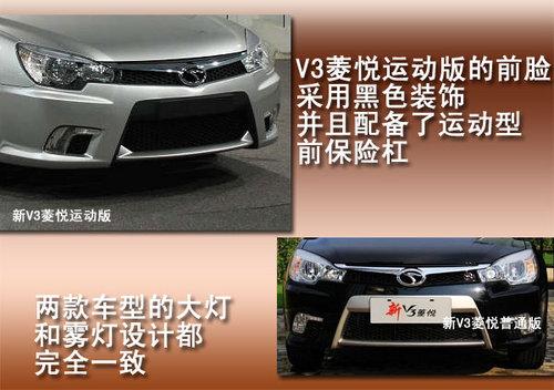 东南新V3菱悦运动版的前脸采用了黑色保险杠装饰,但保险杠底部的扰流设计却采用空气动力学设计,使前脸看上去更加运动。新V3菱悦运动版的前大灯和雾灯的设计与普通版一致,而且前进气格栅的镀铬装饰条与普通版相比也并没有变化。