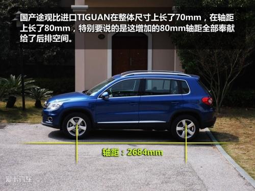 国产途观比进口车型在整体尺寸上长了70mm,在轴距上长了80mm,特别要说的是这增加的80mm轴距全部奉献给了后排空间。说到了车身尺寸,那就顺便说一下车身高度,从上海大众官方给出的数据表上看,国产途观1.8TSI最低配的手动六速前驱和手自一体六速前驱车型,其车身高度比其他版本的1685mm高度要低了20mm。