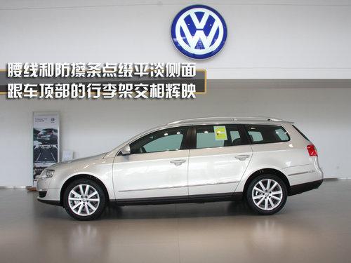 腰线是从翼子板1点钟方向开始显现,与镀铬防擦条平行状态一起延伸到了尾部,把略显平静的侧面点缀出一点立体的质感。侧窗采用一体全景式展现,拥有一气呵成的畅快,从这里渐渐看出旅行车的端倪。
