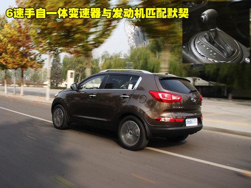 智跑采用了韩国现代起亚自行研发的6速手自一体变速器,与发动机的匹配很默契,而且换挡的冲击很小。当需要超车深踩油门时,智跑的转速快速提升,动力的涌现没有迟滞,直线的加速表现还是比较令人满意。另外值得一提的是,由于智跑采用了轿跑式的流线型设计,因此这款车在高速行驶时车内的风噪声也很小。在节油方面,智跑配备了Eco-Driving节能驾驶提示系统,在驾驶过程中会随时监控驾驶者的操控,综合变速模式、车辆速度、刹车信号、变速器温度等对油耗有影响的因素,通过控制系统给发动机提供最佳燃油量,并将燃效情况通过仪表盘上提示灯的闪烁及时反馈给驾驶者。