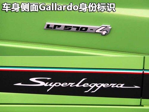 与一般车型标识位于车尾有所不同,兰博基尼Gallardo LP 570-4 Superleggera的标识显示于车身侧面,Superleggera的字体很炫丽。