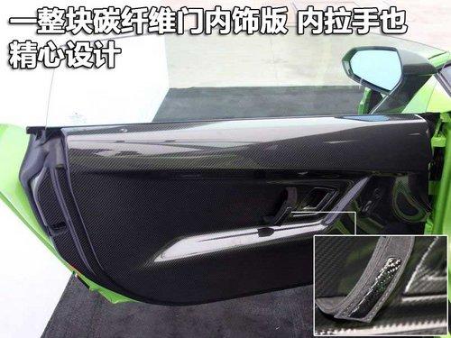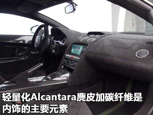 除了轻量化的车身设计,兰博基尼的工程师们也竭尽全力减轻内饰的质量。空调出风口盖、车门面板及手制动拉杆均由碳纤维制成,这种高端材料还应用于运动型座椅外壳,由于碳纤维材料的大量使用,该车内饰部分的质量减少了40kg。车内座椅、转向盘和中控台使用了比真皮质量更轻且具备防滑功能的Alcantara材料。