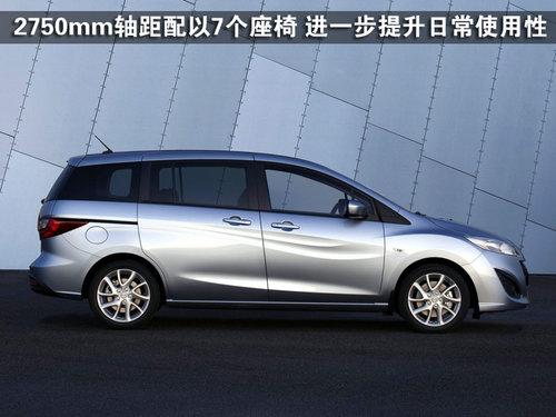无论从车身尺寸哪个环节来讲,全新马自达5都有了进一步的提升,长宽高分别为4590*1750*1600mm,轴距达到了2750mm,配以全车的7座承载能力,使该车具有了强大的日常使用性,更为周末全家出游提供了极大便利。