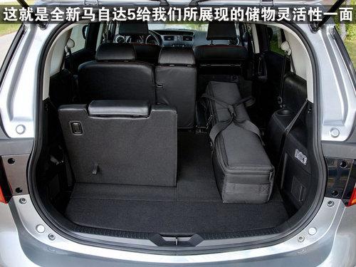 通过实物的放置后,我们可以清晰的看出全新马自达5在储物灵活性上的优势,对于这样一款小型MPV来说,这才是它最大的卖点,可以想象周末时拉上亲朋或好友一同结伴出行,绝对是个不错的选择。