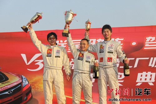 中新网12月7日电 日前,V3菱悦拉力梦工厂年度争霸赛在北京怀柔开战,来自深圳场的车手杨发军勇夺冠军,并获得终极大奖1台V3菱悦10年使用权,而来自北京场的车手李元和来自郑州场的车手许广胜分别夺得亚军和季军,分别获得2万元购车券和1万元购车券。同时演艺明星景岗山、王啸坤、周晓欧等也出席助阵,并与参赛选手同场竞技。