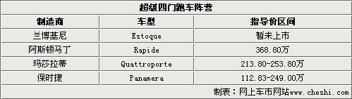 兰博基尼的最终决定我们还暂时不得而知,但保时捷的Panamera四门超跑和阿斯顿马丁的Rapide已经登录并且开始抢占市场先机,而同样来自意大利的奢华品牌玛莎拉蒂的总裁系列,已经取得了傲人的战绩,相信兰博基尼(Lamborghini)很快就会推出他们的Estoque量产型,至于兰博基尼SUV车型的夭折,网上车市将拭目以待。