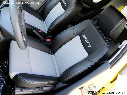 座椅的几处细节体现了偏运动化的设计。双色座椅黑色部分为真皮材质,灰色的缝线以及swift标志看起来颇为个性。灰色的织物材质在增加了摩擦力的同时也增强了耐久度。从图上可以看出腿部两侧突起不是很明显,但座垫中间比整体要长。整个座椅造型较为时尚,但对实际驾驶帮助不大。