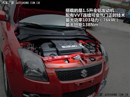 铃木这台M15A发动机较为平庸,1.5升自然吸气,带VVT技术。最大功率76kw/6000rpm;最大扭矩138N·m/4000rpm;最高时速175km/h。发动机数据和同级别的马自达2相同,但由于变速箱齿比等差异,最高时速比马自达2慢了11km/h,相比飞度还是有着12kw和7N·m的差距。从数据上可以看出这台M15A属于高转速发动机,好处是当转速上来后有着不错的爆发力,中段加速也不至于很软;缺点是在较低转速区域内发挥不出车辆的扭矩,使得起步加速会比低转速发动机慢。减档、拉高转速是唤起这台发动机爆发力的最佳手段,但油耗也会随之攀升。