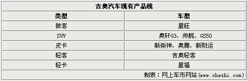 吉奥目前的产品线拥有SUV、皮卡、微客、轻客、轻卡等,其中在前段时间刚刚推出了奥轩G3越野车,不过拥有了广汽三菱的广汽集团,显然看中的是微客产品而不是SUV,可以说由范伟代言的星旺微客将是广汽吉奥未来发展的重点产品,在此我们选择了星旺和刚刚上市奥轩G3简单介绍一下。